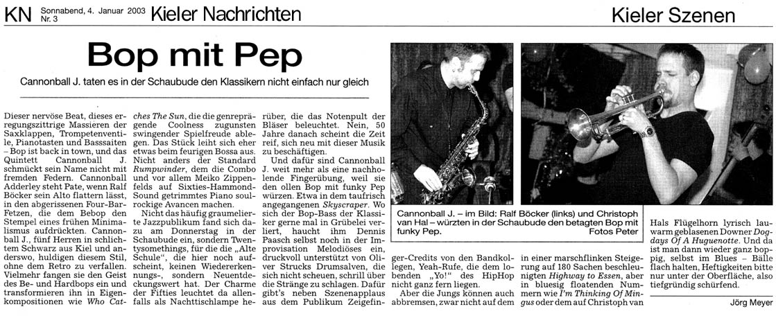 [Home] [Bands] [CD´s] [Projekte] [Konzerte 2009] [Impressum] [JazzHausRadio]