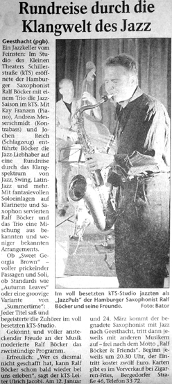 [Home] [Bands] [CD´s] [Projekte] [Konzerte 2009] [Impressum] [JazzHausRadio]